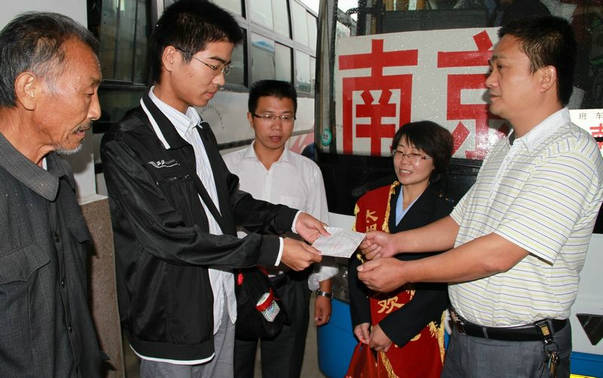 太湖分公司領導得知姐弟倆的情況后,隨即與考生所在鄉(xiāng)村取得聯(lián)系。決定從公司緊張的辦公經(jīng)費中解決姐弟倆大學期間的路費。9月10日是弟弟陳先義報道的日子,太湖分公司領導曹全龍同志代表太湖分公司全體汽運人親手將兩張?zhí)聊暇┑能嚻彼偷疥愊攘x同學手中,并鼓勵他們樹立信心,正確面對暫時的困難,好好學習,以過硬的本領回報社會。受助大學生陳先義對太湖分公司的無償援助表達了感激之情。